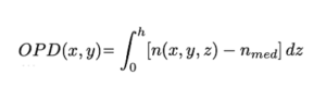 If we consider that changes in the refractive index within a transparent sample introduce local photon delays with respect to one another, sending an optical wave on this sample will result in producing a distorted wavefront as a result of propagating within such an inhomogeneous medium. Recording the shape of the resulting wavefront directly gives a spatial distribution of the so-called optical path difference OPD(x,y) defined by: