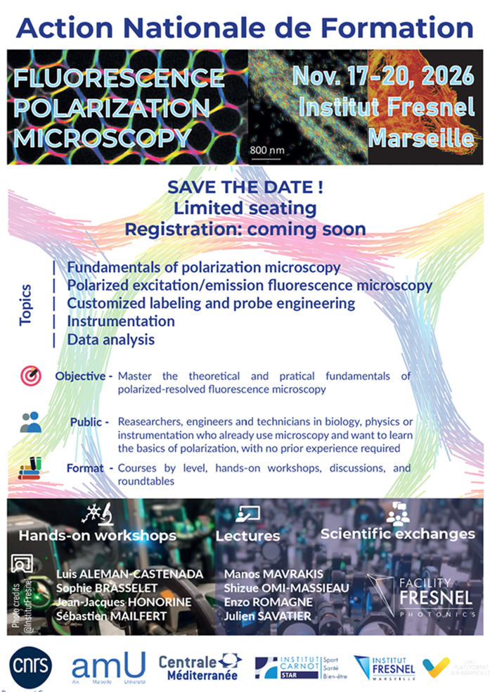 The Institut Fresnel (CNRS/AMU/ECM, Marseille) is pleased to announce the organisation of the ANF Fluorescence Polarization Microscopy, a CNRS “Action Nationale de Formation” dedicated to polarization microscopy applied to biological imaging.